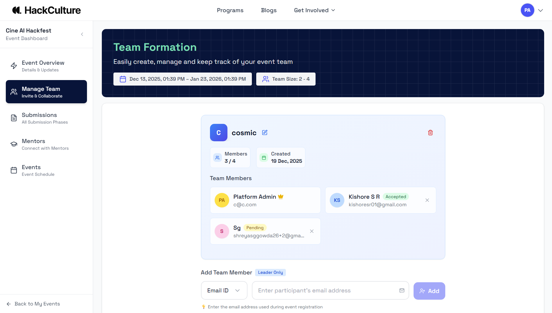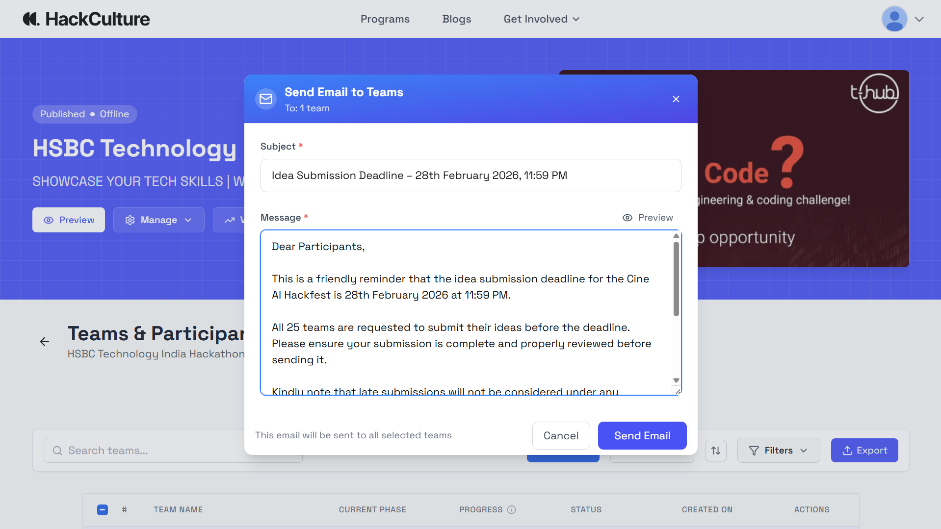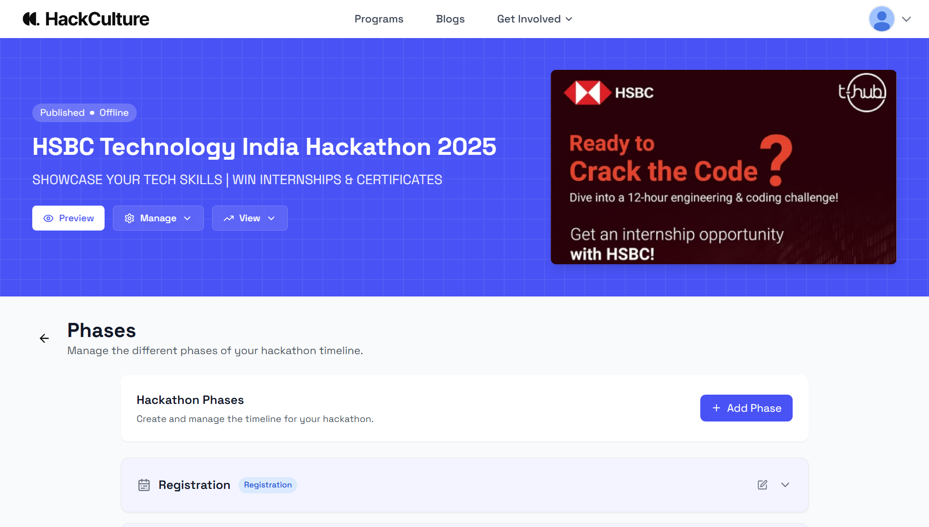 Manage the entire hackathon through a centralized dashboard.